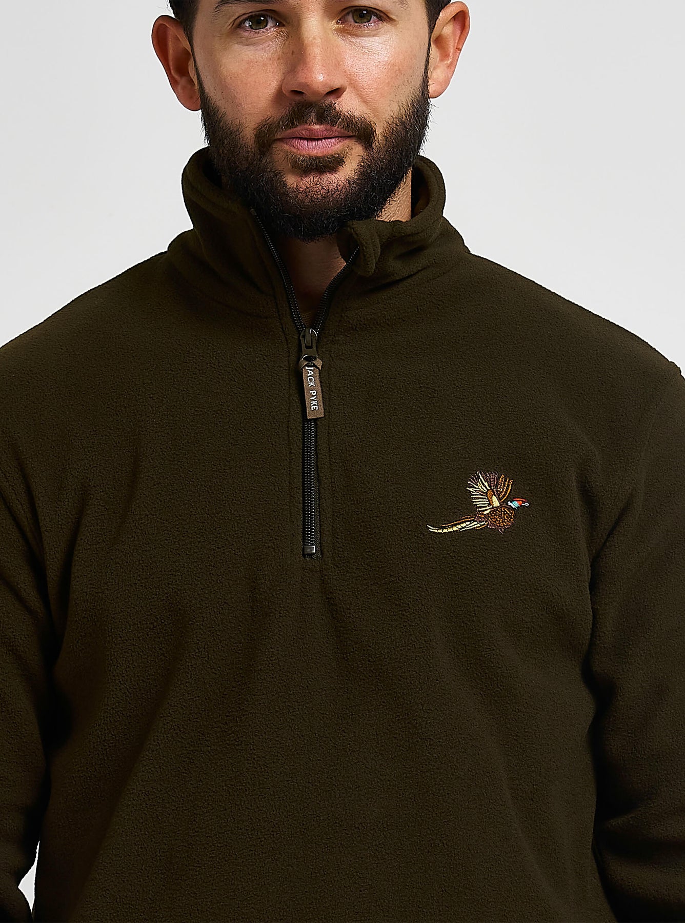 Jack Pyke Men’s Fleece Top 250GMS – Outdoor Fleece Pullover with Embroidered Pheasant Motif, Elasticated Cuffs & Extended Back, Field Jumper for Autumn, Winter