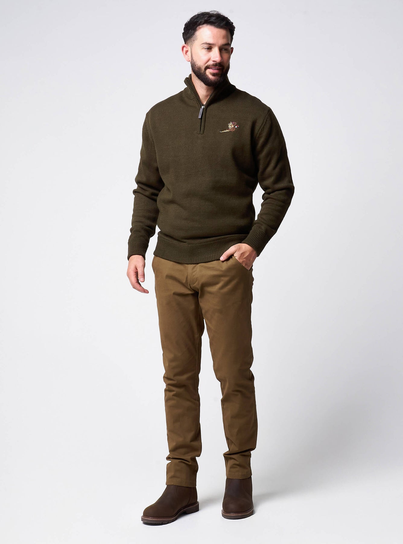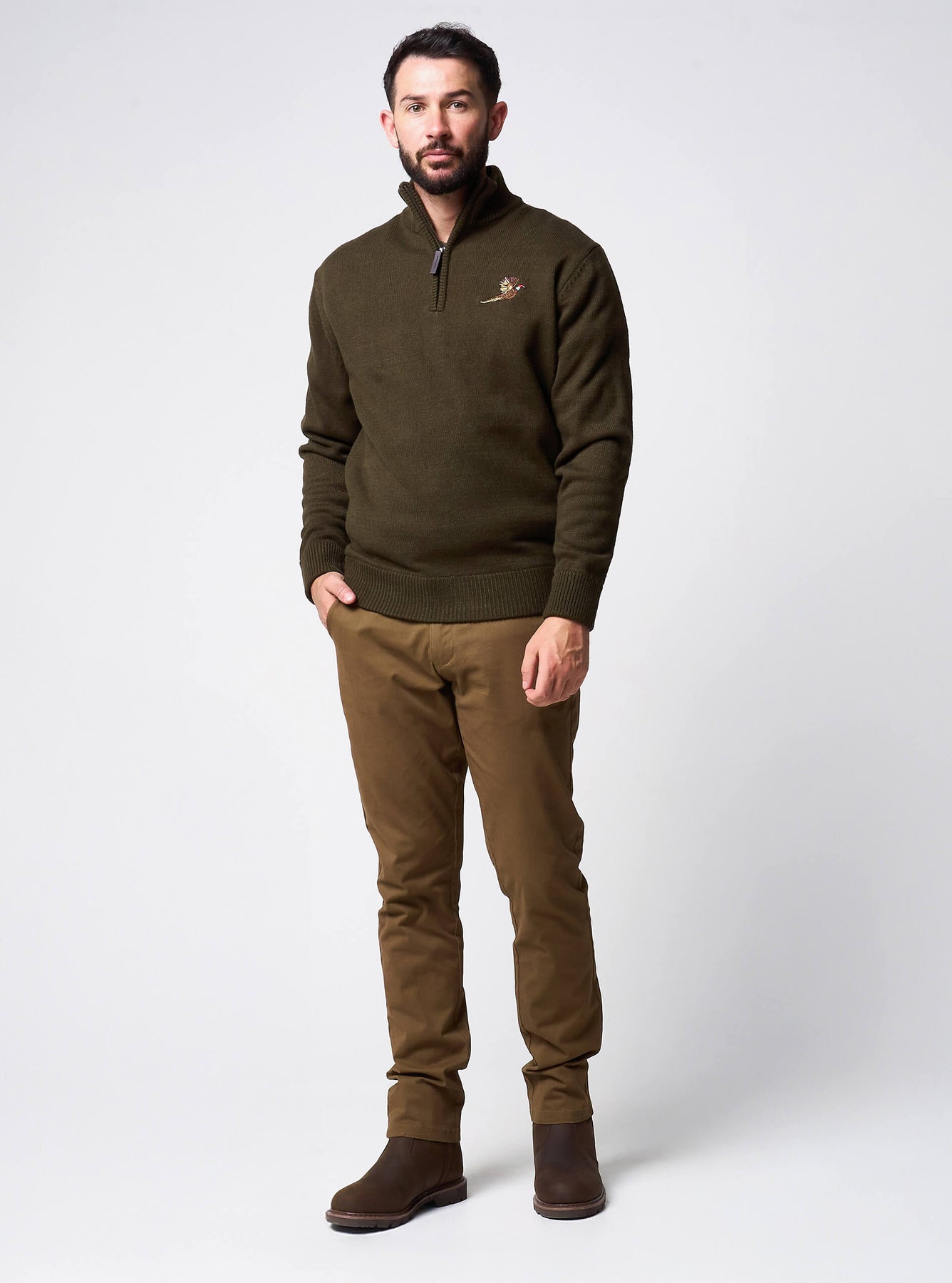• Embroidered pheasant chest detail – distinctive country heritage touch